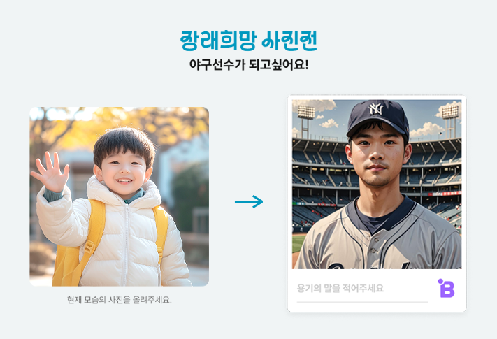 간단한 꿈 설문과 함께 자녀의 사진을 넣으면,